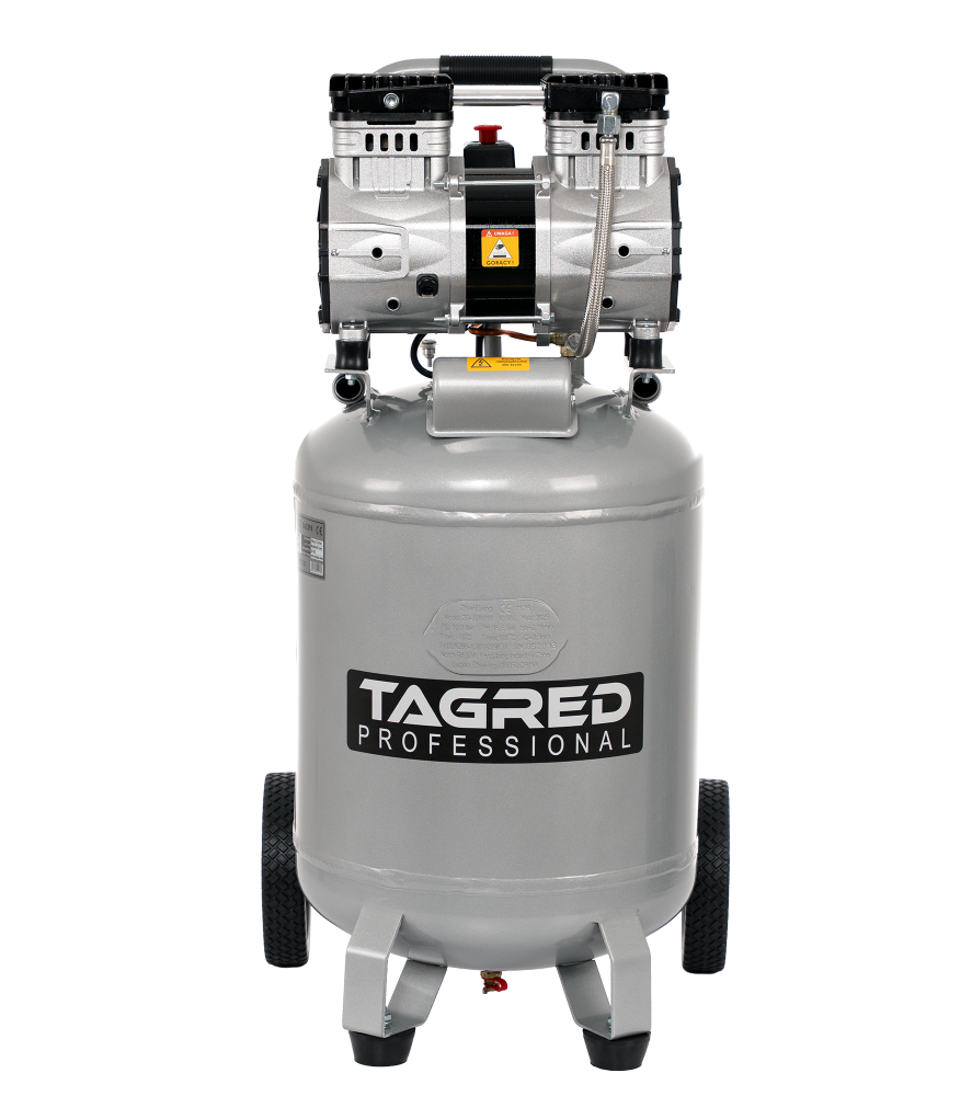 Compresorul TAGRED  fără ulei dispune de  un ansamblu piston-diafragmă funcțional și practic fără întreținere  . Acest design face ca  compresorul de aer  să fie foarte  silențios  și eficient, fiind potrivit pentru utilizare  atât în ​​încăperi de service, cât și în locuințe.