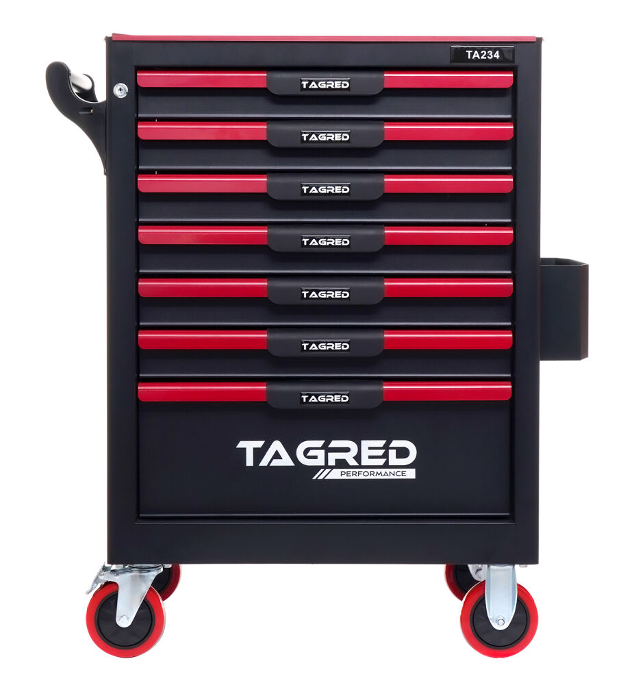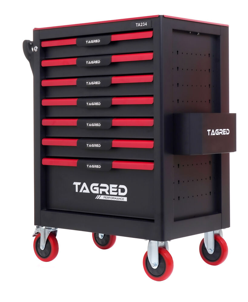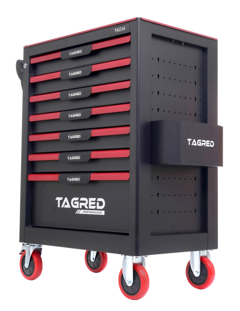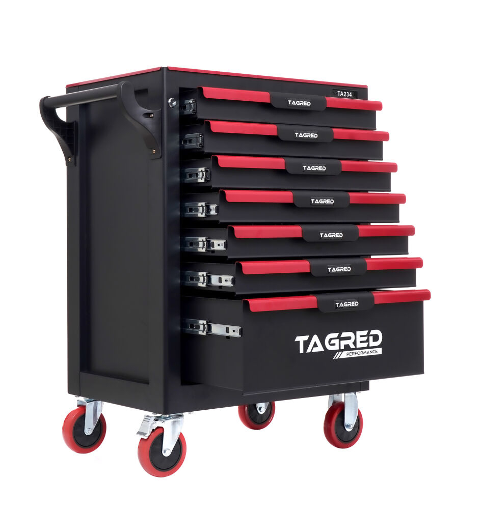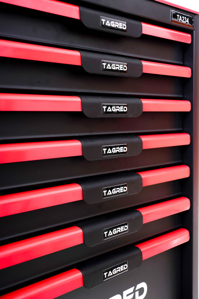 Căruciorul robust  de atelier TAGRED TA234 este un echipament indispensabil în fiecare atelier. Echipat cu  7 sertare  cu rulmenți, un blat din oțel  cu căptușeală  și o închidere centralizată, asigură depozitarea convenabilă și sigură a uneltelor și accesoriilor. Materialele utilizate și soluțiile bine gândite fac ca TAGRED TA234 să fie potrivit atât pentru  profesioniști  , cât și pentru  uz casnic  .