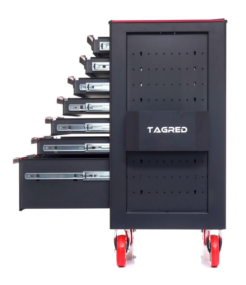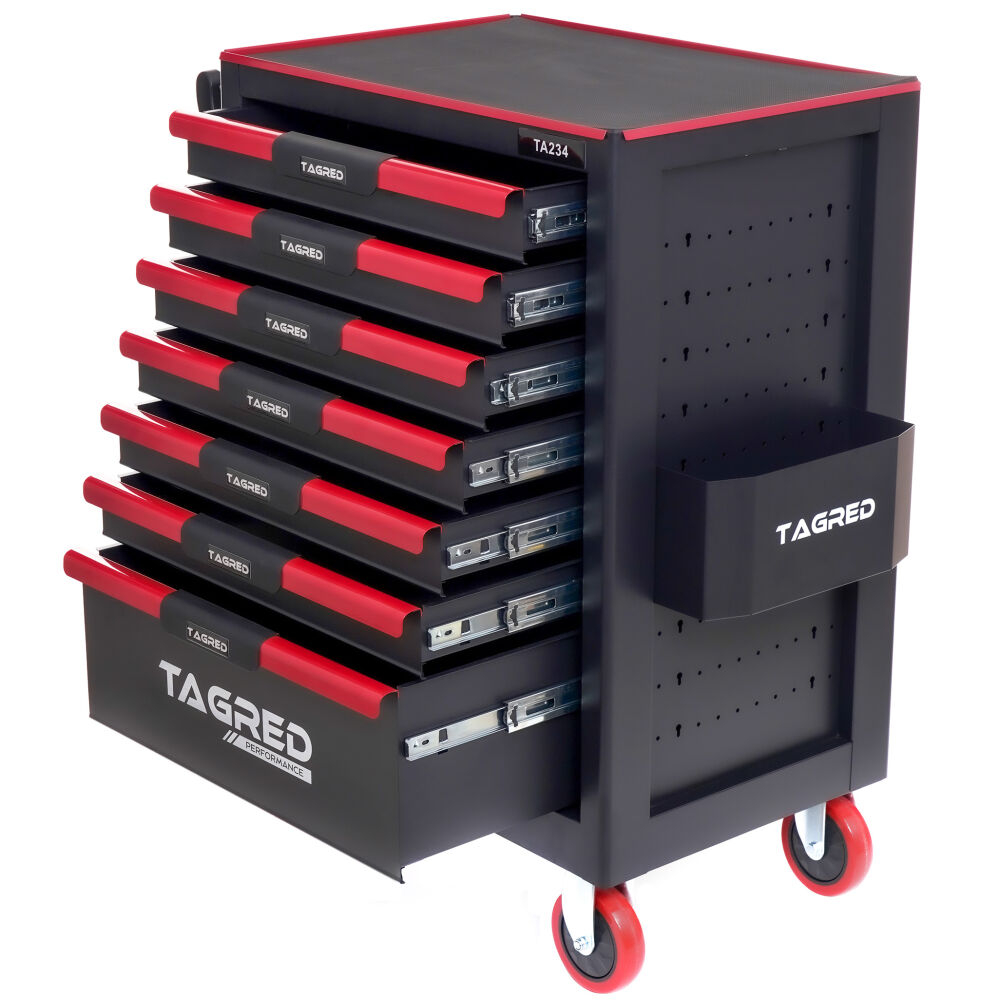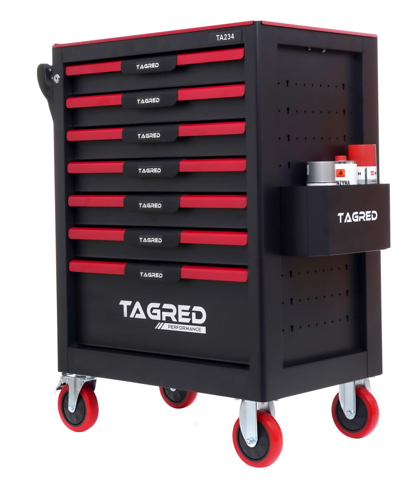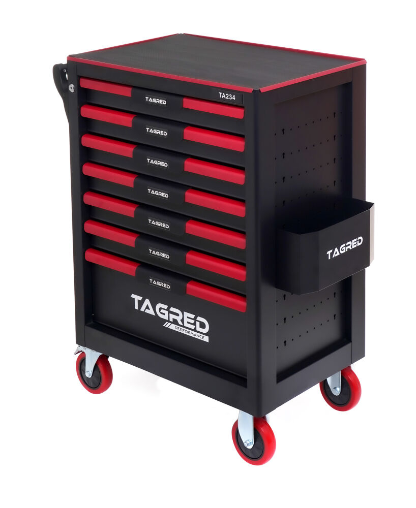 Căruciorul robust  de atelier TAGRED TA234 este un echipament indispensabil în fiecare atelier. Echipat cu  7 sertare  cu rulmenți, un blat din oțel  cu căptușeală  și o închidere centralizată, asigură depozitarea convenabilă și sigură a uneltelor și accesoriilor. Materialele utilizate și soluțiile bine gândite fac ca TAGRED TA234 să fie potrivit atât pentru  profesioniști  , cât și pentru  uz casnic  .