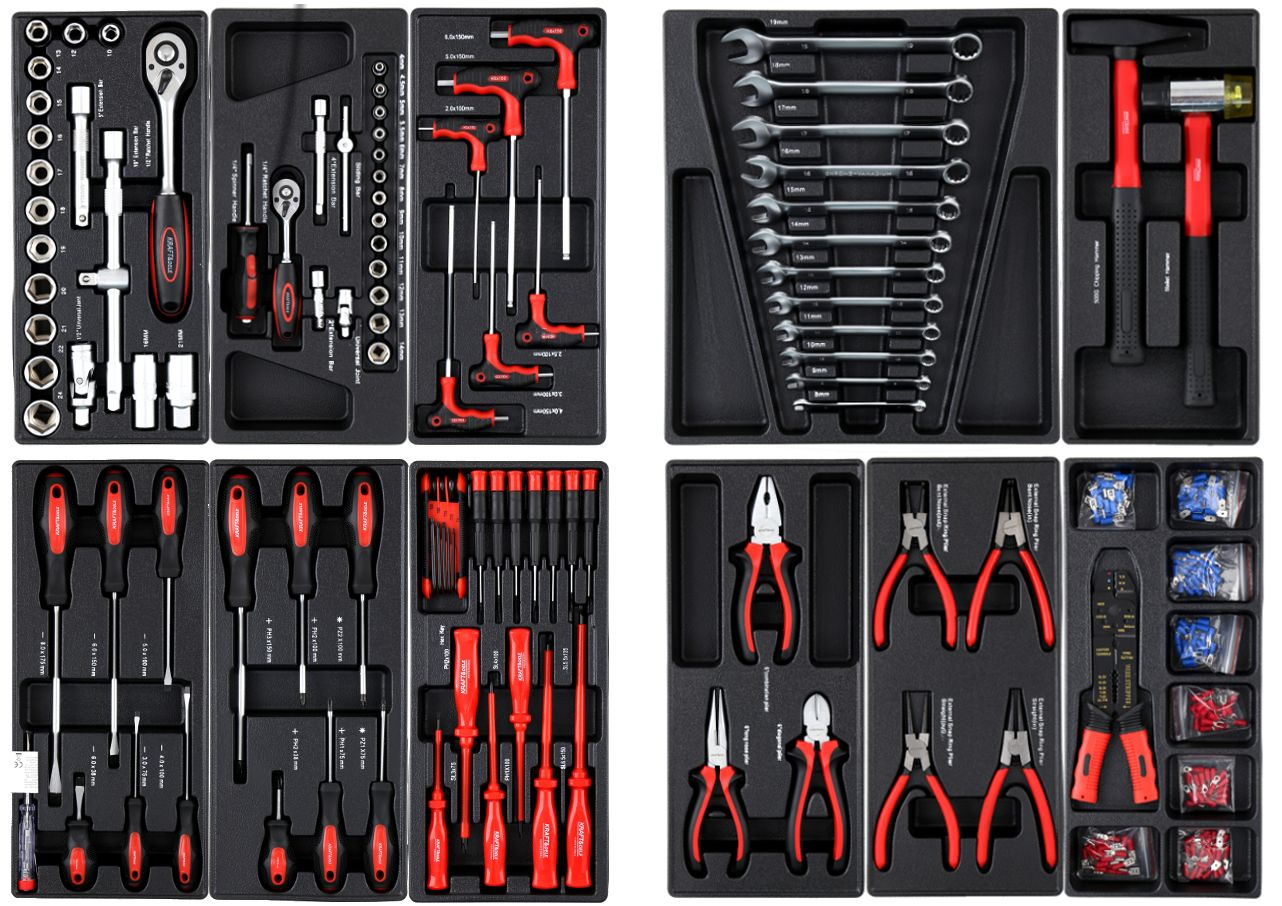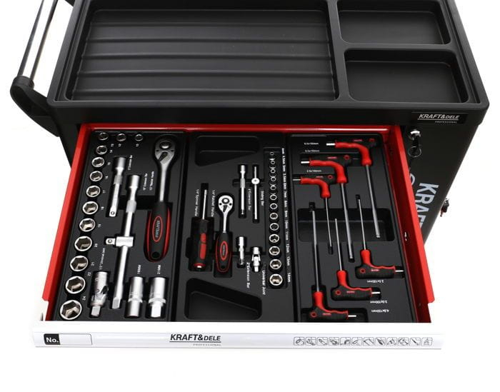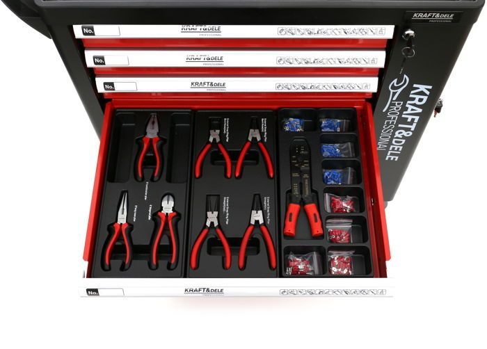 Conținutul setului : • Dulap de atelier KD362 cu scule: • Sertar 1: Chei tubulare și clichete, precum și chei hexagonale și TORX. • Sertar 2: Șurubelnițe plate, Phillips, izolate și TORX. • Sertar 3: Chei fixe și ciocane. • Sertar 4: Clește, clește de sertizat, conectori electrici. • 2 chei • Set de roți cu frâne • Chitanță sau factură cu TVA • Instrucțiuni în poloneză |