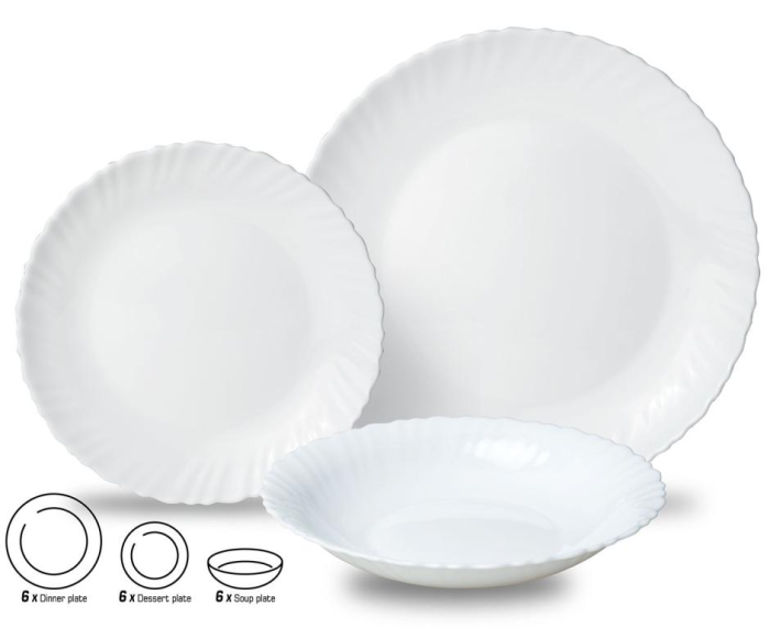 Set 18 farfurii portelan alb pentru 6 persoane, intinse, desert si adanci (KH-1875)