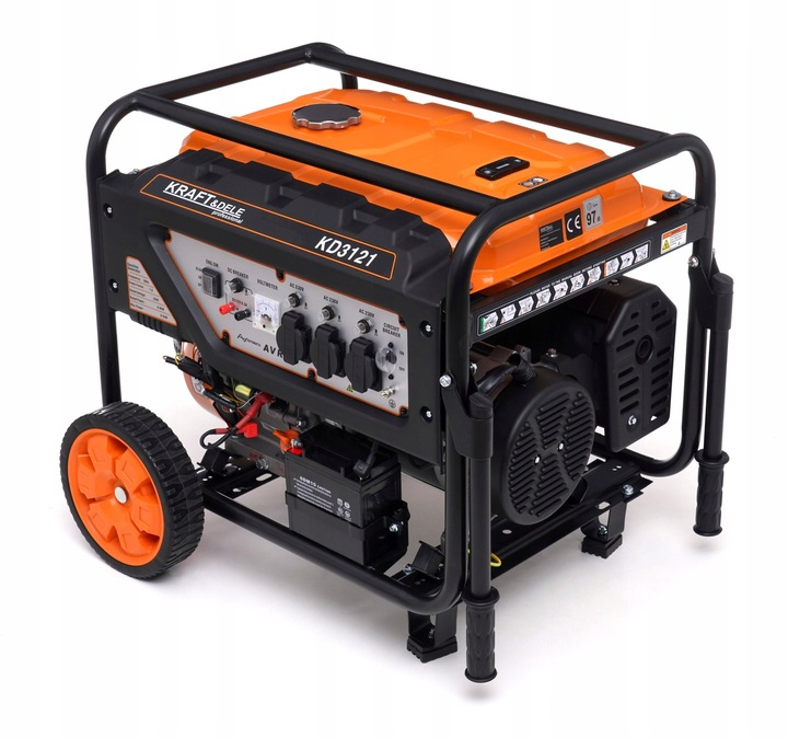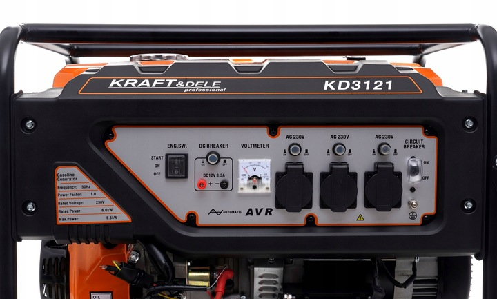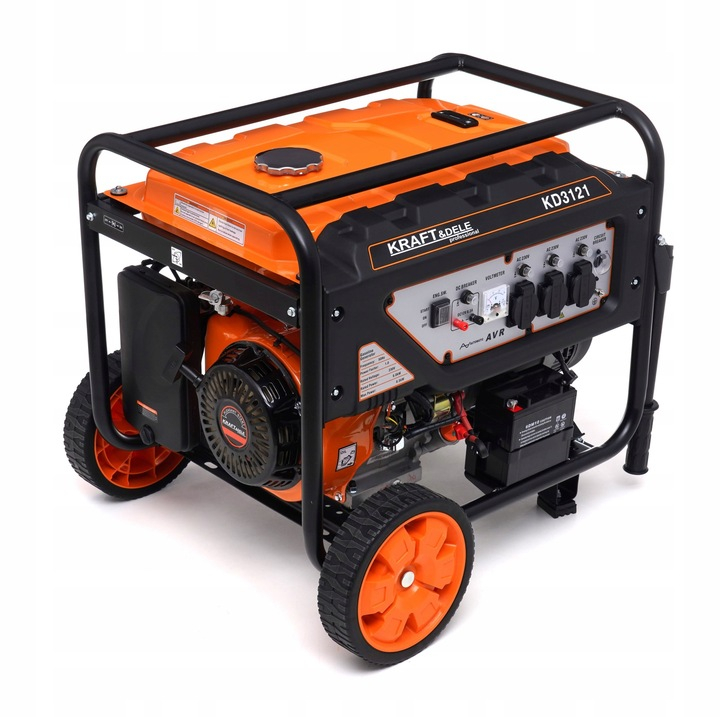 Generator portabil, monofazat 230V/12V Kraft&Dele KD3121 cu o putere de 6500W, alimentat de un motor pe benzina in patru timpi.