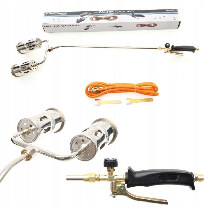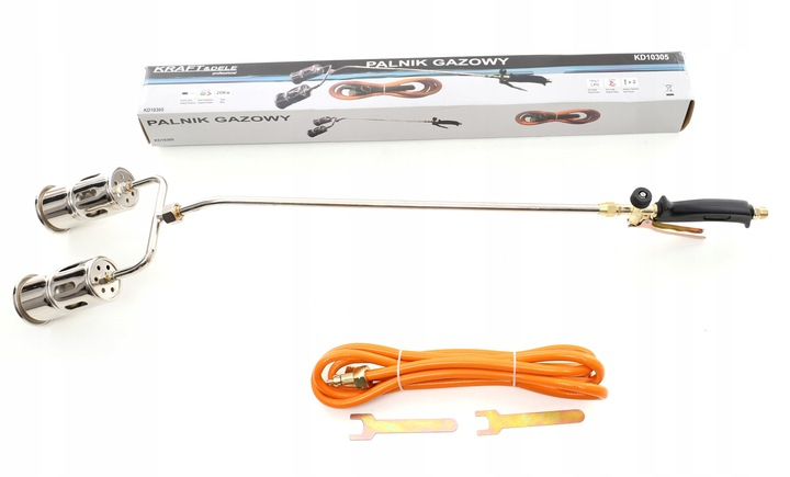 KD10305 Arzător cu gaz de acoperiș pentru gaz propan-butan cu furtun pentru butelie. Perfect pentru acoperișuri, bronzare și multe altele. Mânerul cu buton care reglează debitul de gaz vă permite să setați cu precizie flacăra dorită.