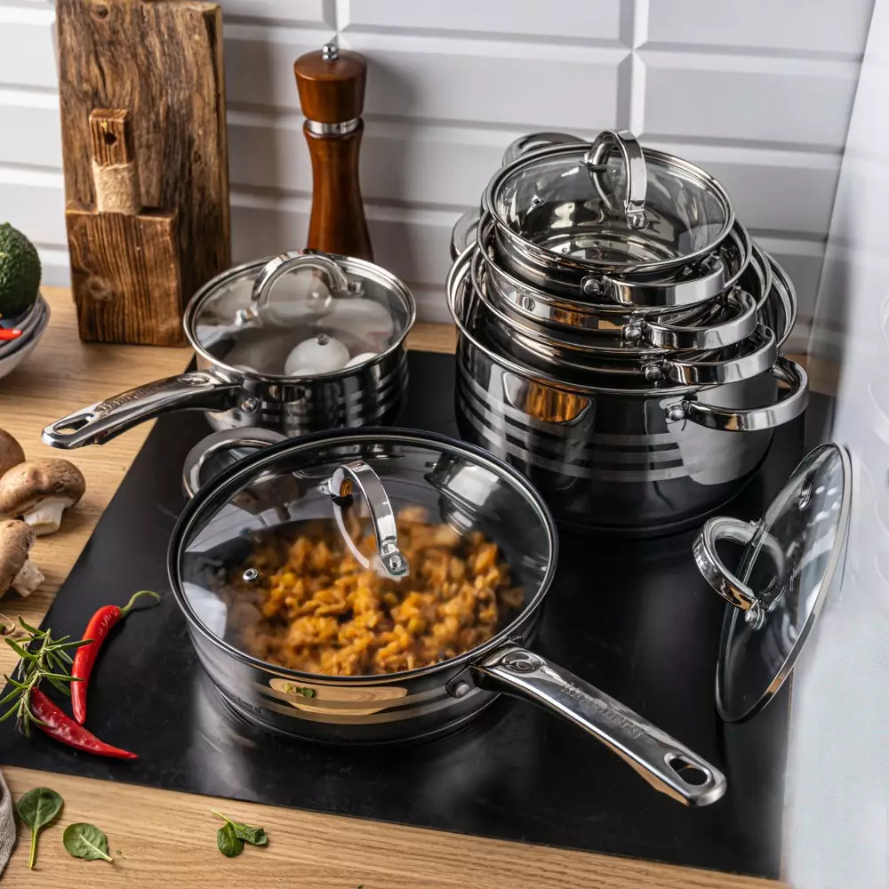 - Potrivit pentru toate tipurile de surse de încălzire: gaz, electric, ceramică, sticlă, halogen și inducție