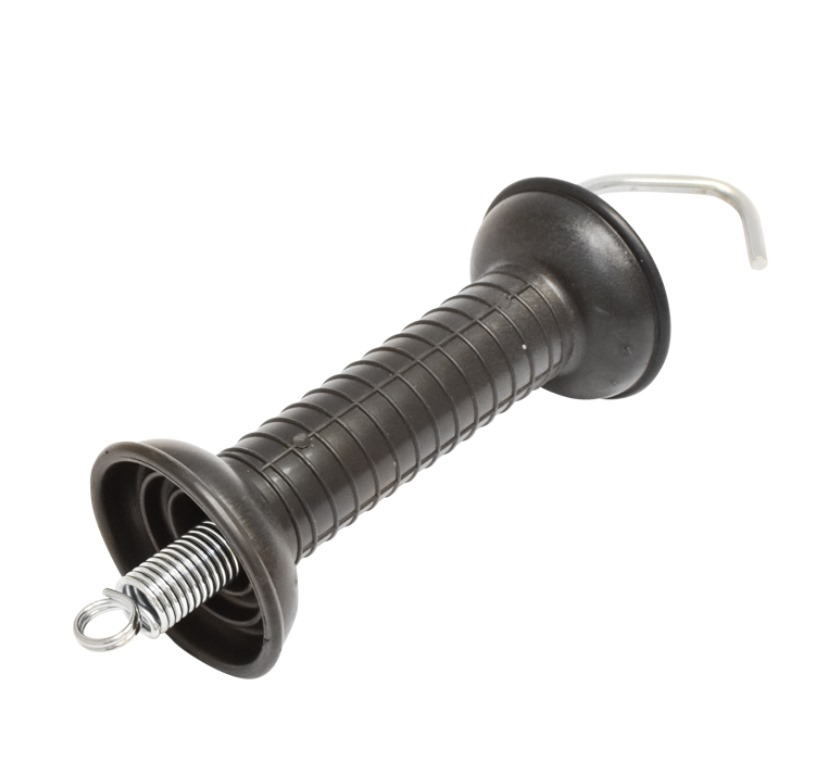 Maner poarta negru cu carlig si arc tensionare gard electric (BK87667)