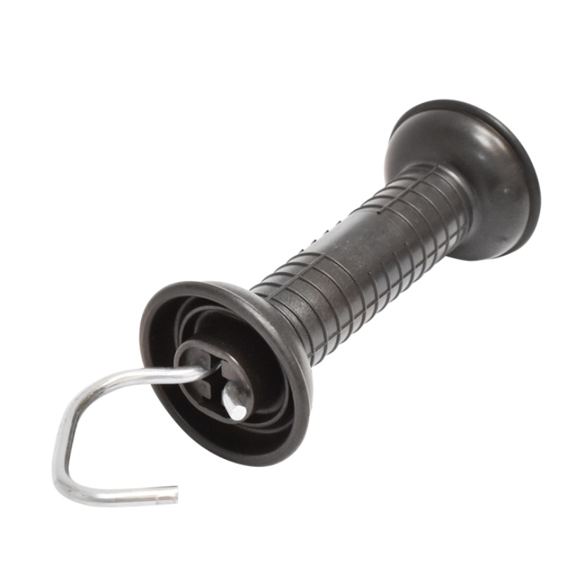 Maner poarta negru cu carlig si arc tensionare gard electric (BK87667)