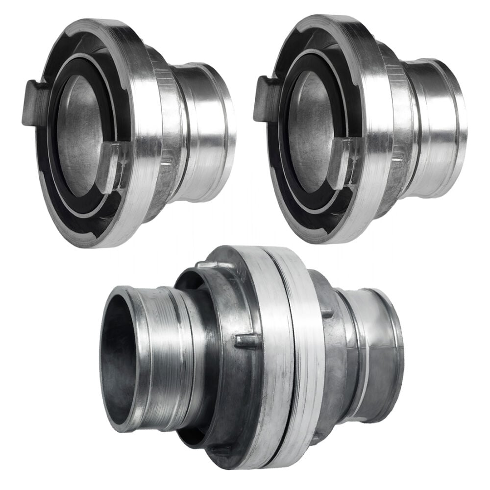 2 x Set complet adaptoare furtun 3tol conector pompieri pompa (TA524) Conector rapid de 3'' 78 mm pentru furtunuri de incendiu, set de 2 conectori rapizi Un produs de înaltă calitate utilizat pentru conectarea furtunurilor de incendiu la pompe, distribuitoare, colectoare, hidranți etc. Setul - manșon, coroană, garnitură și inel de reținere - este fabricat din materiale de înaltă calitate: aliaj de aluminiu. Coroanele și manșoanele sunt fabricate dintr-un aliaj dur, sunt ușoare și foarte rezistente la coroziune. Diametrele conectorilor sunt adaptate la diametrele furtunurilor. Compoziția setului: Oferta include doi conectori de 3", inclusiv:
