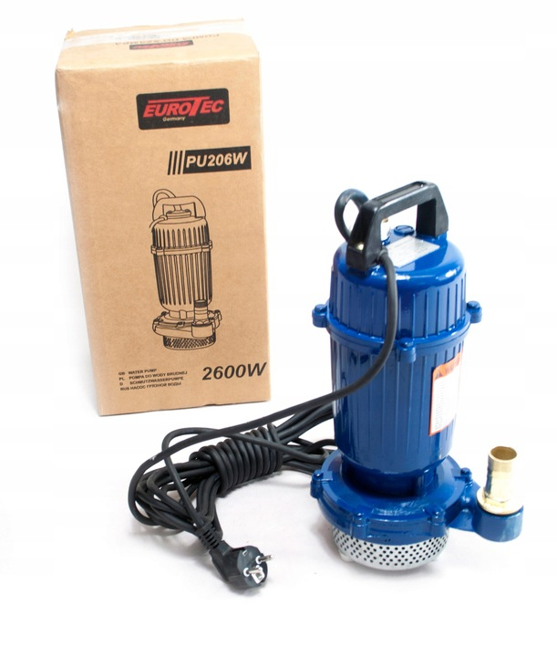 Pompa submersibilă Eurotec PU206 este realizată din materiale de înaltă calitate, făcând-o complet ermetică și complet submersibilă. Este echipat cu un motor fiabil de 2600W , datorită căruia dispozitivul atinge o viteză de 2850 rpm , ceea ce se traduce printr -o eficiență de 8000l/h. Poate ridica cu ușurință jetul de apă până la 10 m și poate fi scufundat la o adâncime de până la 5 m. La pompă poate fi conectat un furtun cu diametrul de 1'' mm , datorită căruia dispozitivul este capabil să pompeze o cantitate mare de apă. Un cablu de alimentare lung de aproximativ 7 m vă permite să utilizați pompa chiar și în locuri departe de sursa de alimentare, fără a utiliza un prelungitor. Conectorul FAST-FIX cu filet exterior inclus cu pompa permite instalarea imediata a unui furtun de livrare cu FAST-FIX.