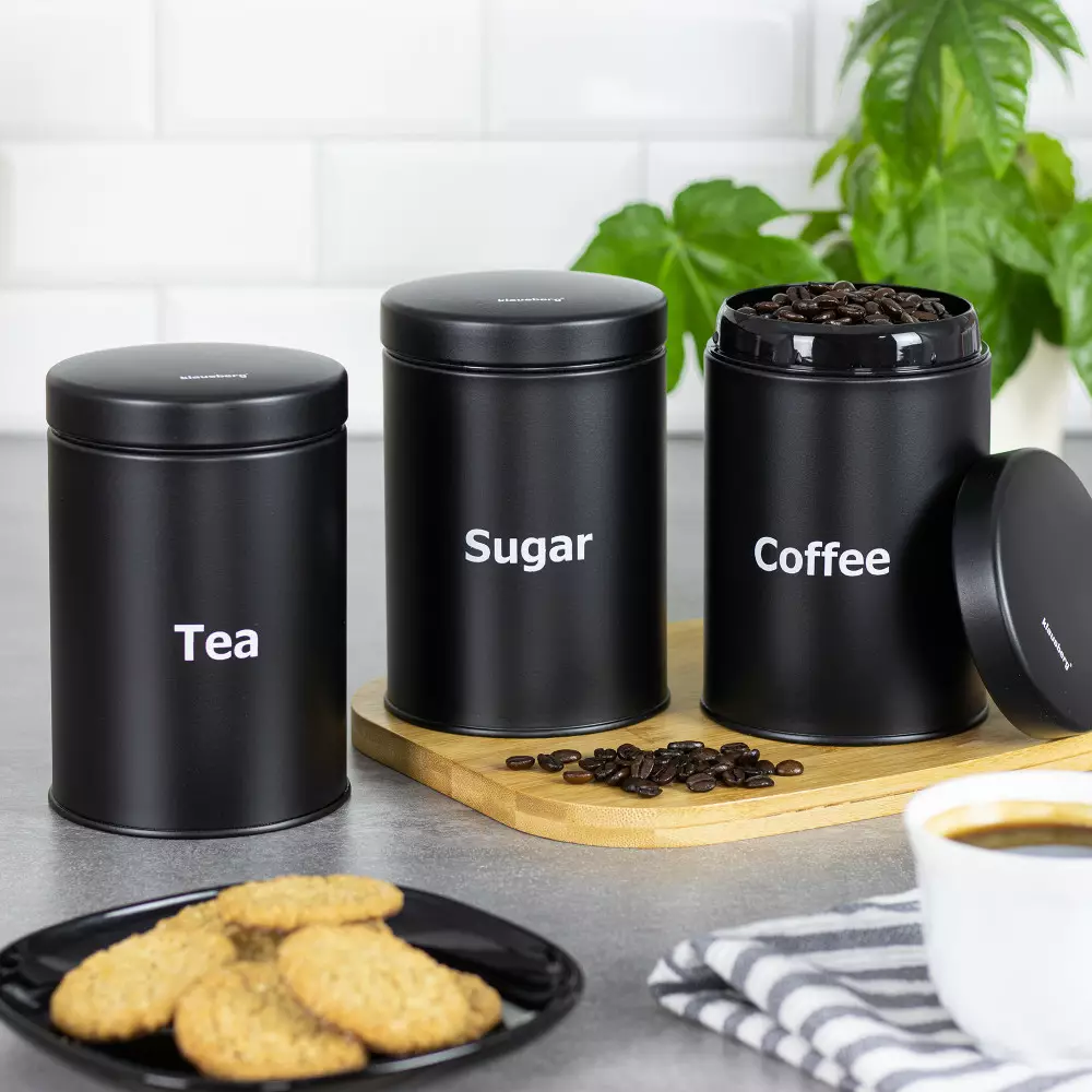 Set 3 recipiente depozitare, culoare negru (KB-7256)