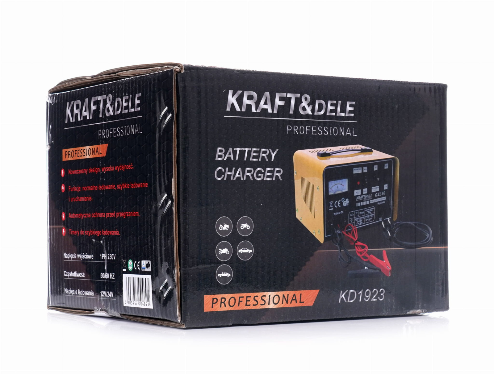 Încărcătorul cu microprocesor KD1923 de la compania poloneză Kraft & Dele este un încărcător fiabil pentru încărcarea tuturor tipurilor de baterii cu plumb (WET/MF/CA/EFB/GEL/AGM). Timpul de încărcare depinde de capacitatea nominală a bateriei și de gradul de descărcare.