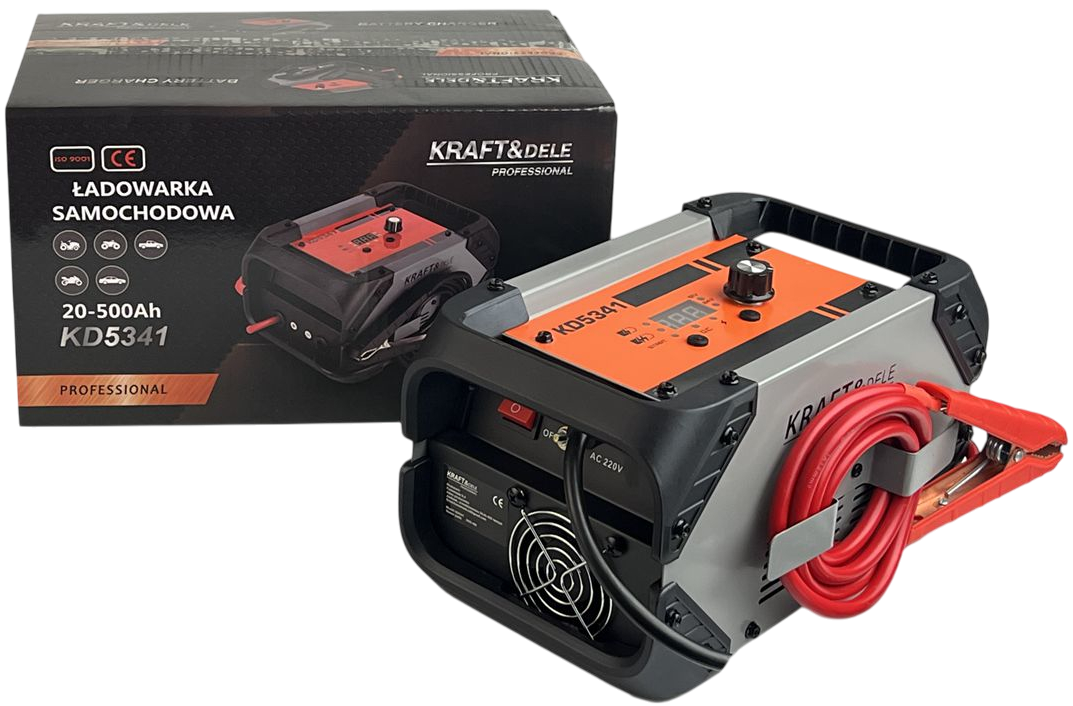 KD5341 este un încărcător auto modern de la KRAFT&DELE, conceput pentru încărcarea rapidă și inteligentă a bateriilor din autoturisme, SUV-uri și motociclete. Datorită tehnologiei avansate de invertor, dispozitivul funcționează cu o eficiență de până la 90%, asigurând încărcarea stabilă și sigură a bateriilor cu capacități cuprinse între 20 și 500 Ah. Încărcătorul detectează automat tensiunea bateriei (12V sau 24V), ajustează curentul de încărcare și utilizează un sistem extins de protecție în 8 etape. KD5341 oferă, de asemenea, o funcție de pornire asistată, permițându-vă să porniți vehiculul chiar și cu o baterie complet descărcată. Este ideal atât pentru uz casnic, cât și profesional.