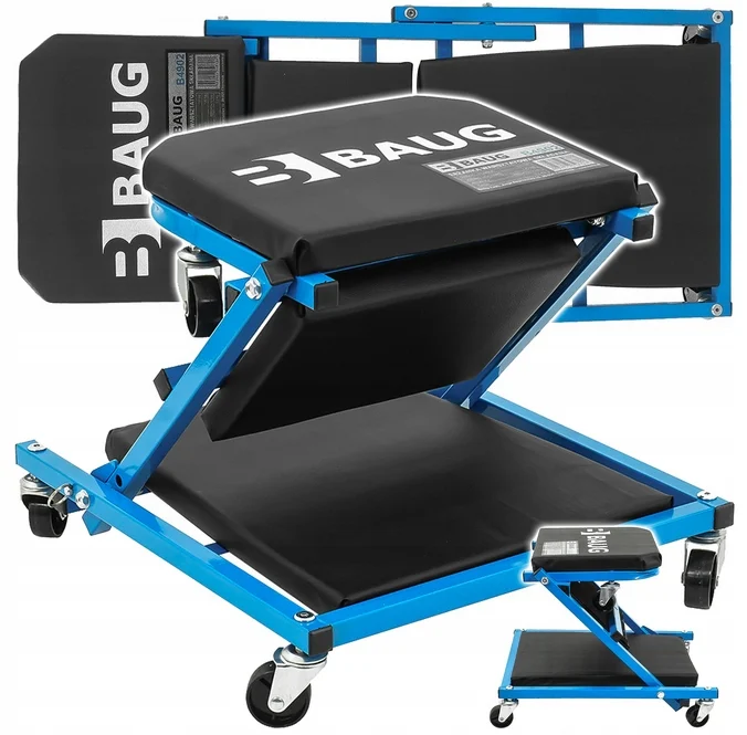 Scaun pat 2 in 1 atelier tetiera mobil targa (B4902) Scaun atelier 2in1 BAUG pentru ateliere profesionale și servicii auto, precum și pentru amatori avansați. Canapea cu funcția unui banc de lucru 2-în-1, care vă permite să lucrați în două poziții: așezat și culcat. Cadrul este realizat din metal, iar scaunul este realizat din plastic prietenos și durabil. Este echipat cu 6 roti rotative, ceea ce faciliteaza foarte mult manevrarea. Cu o singură mișcare, îl puteți transforma într-un scaun de atelier practic și confortabil.