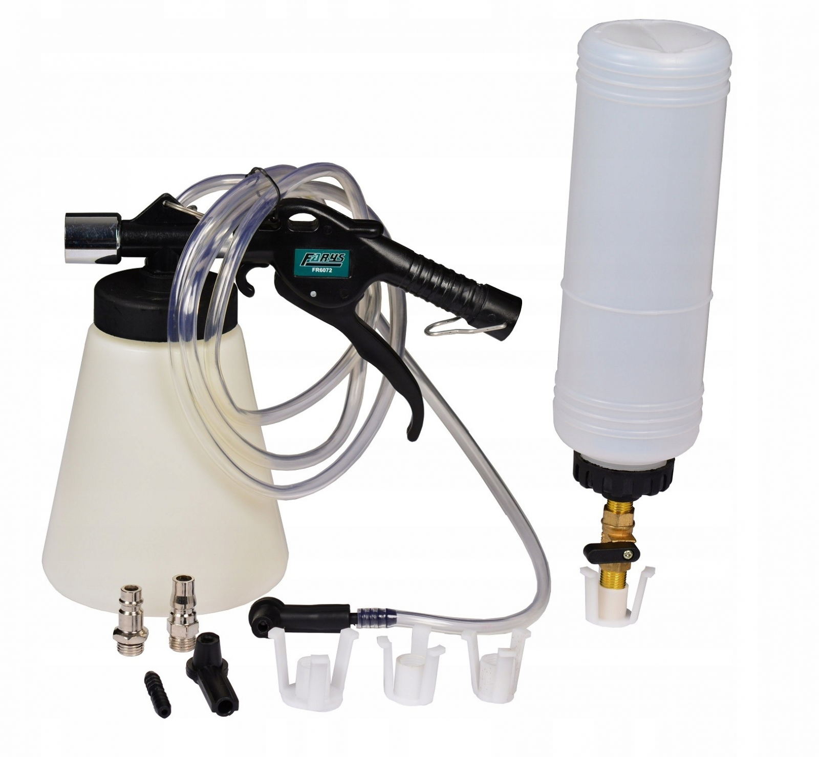 DESCRIEREA PRODUSULUI Kitul profesional de sangerare/ inlocuire a lichidului de frana Kraft & Dele model KD1457 este o aplicatie ideala pentru mecanicii din atelierele auto. Acesta permite înlocuirea independentă a lichidului de frână prin aspirarea acestuia din sistem folosind presiunea sistemului pneumatic. Permite o muncă eficientă rapidă și curată, fără a fi nevoie să utilizați alte echipamente.