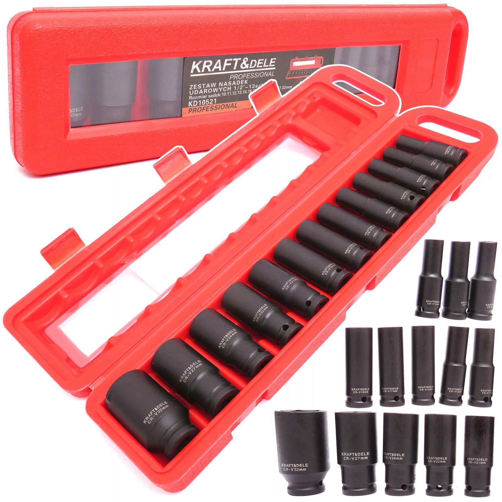 Set trusa chei tubulare impact lungi ½ 13 piese 10-32mm intarite, pistol impact (KD10521) Set trusa chei tubulare impact lungi ½ 13 piese 10-32mm intarite, pistol impact (KD10521)