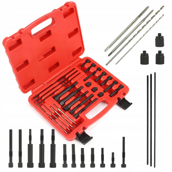 Setul este utilizat pentru a deșuruba filamentele bujiei incandescente rupte prin găurirea unei găuri în ele (burghie incluse), filetarea și înșurubarea unui știft întărit și a unuia dintre cele douăsprezece adaptoare. Apoi înșurubați un alt adaptor pe știft și rotiți-l până când vârful rupt al bujiei incandescente - filamentul - este scos.