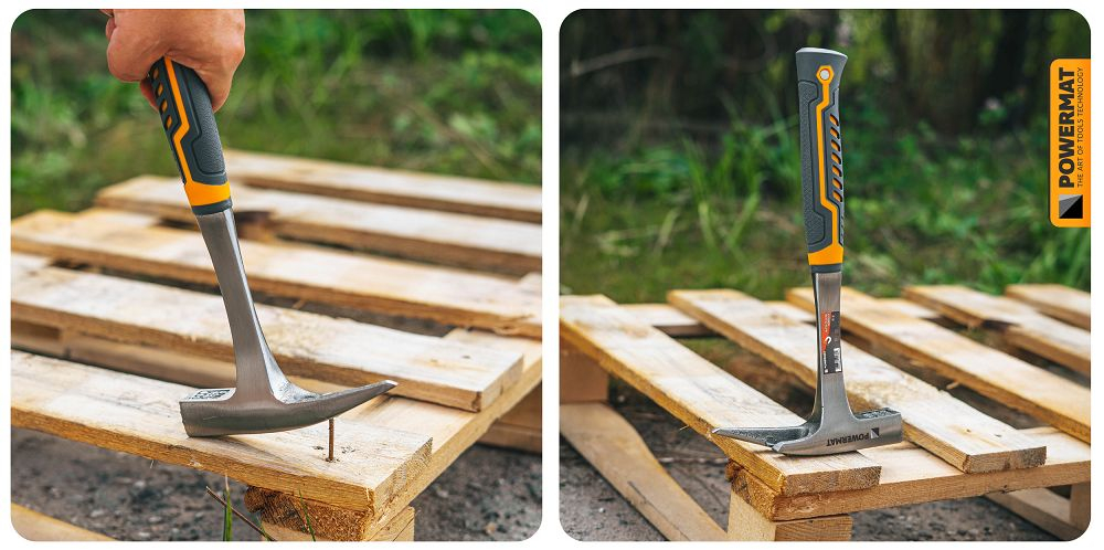 Partea de lucru din spate, sub formă de pană cu doi dinți, permite îndepărtarea rapidă și ușoară a cuielor vechi fără a deteriora materialul.