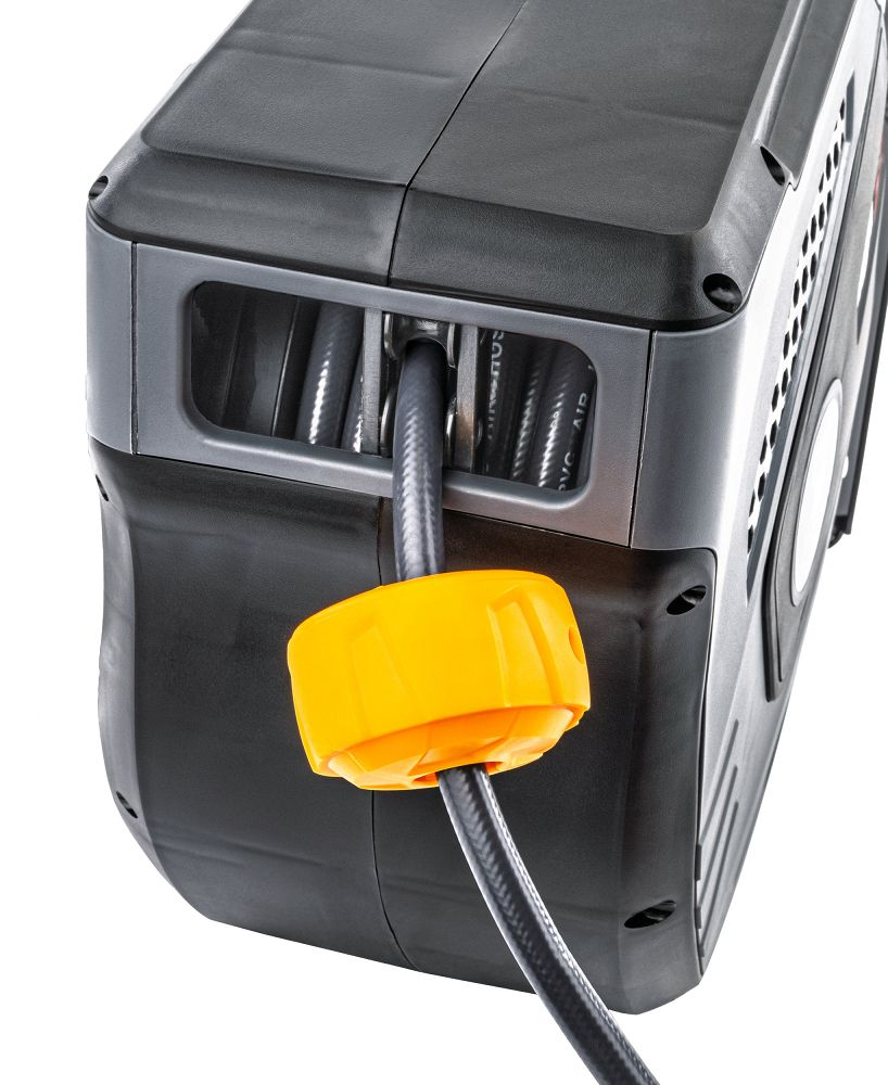 Tamburul pneumatic automat pentru furtun este perfect pentru utilizare în ateliere, parcele, grădini și spații utilitare casnice. Mărește cu ușurință raza de acțiune a lucrărilor de curățare, permițând utilizarea convenabilă a sculelor pneumatice.