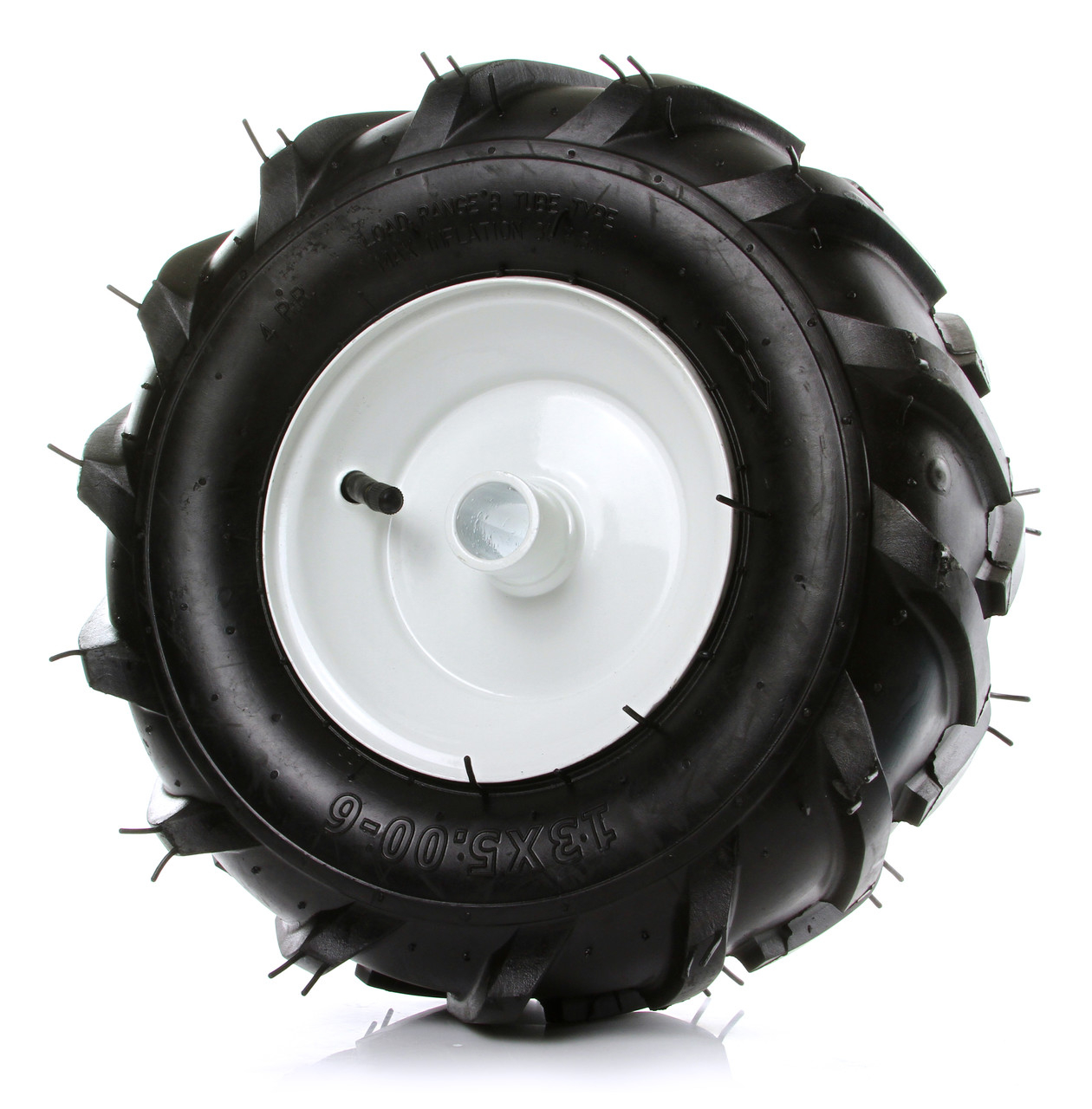 ROATĂ DE TRĂIETOR 13X5.00-6 Cu suport ax de 25 mm. Roată universală, STÂNGA/DREAPTA. Roata are ambele părți. gaură pentru știftul de blocare. Înălțimea manșonului 33 mm. DATE TEHNICE: