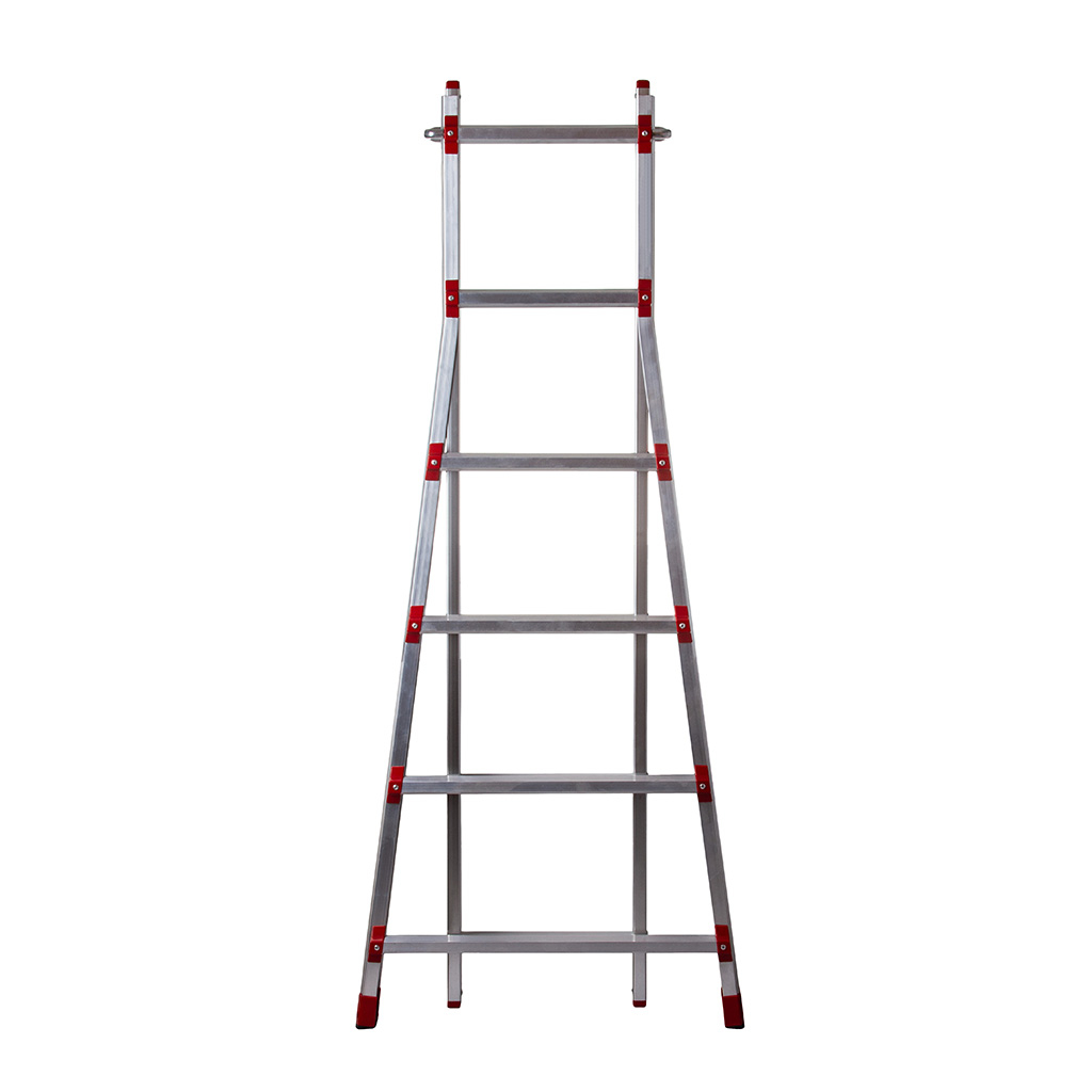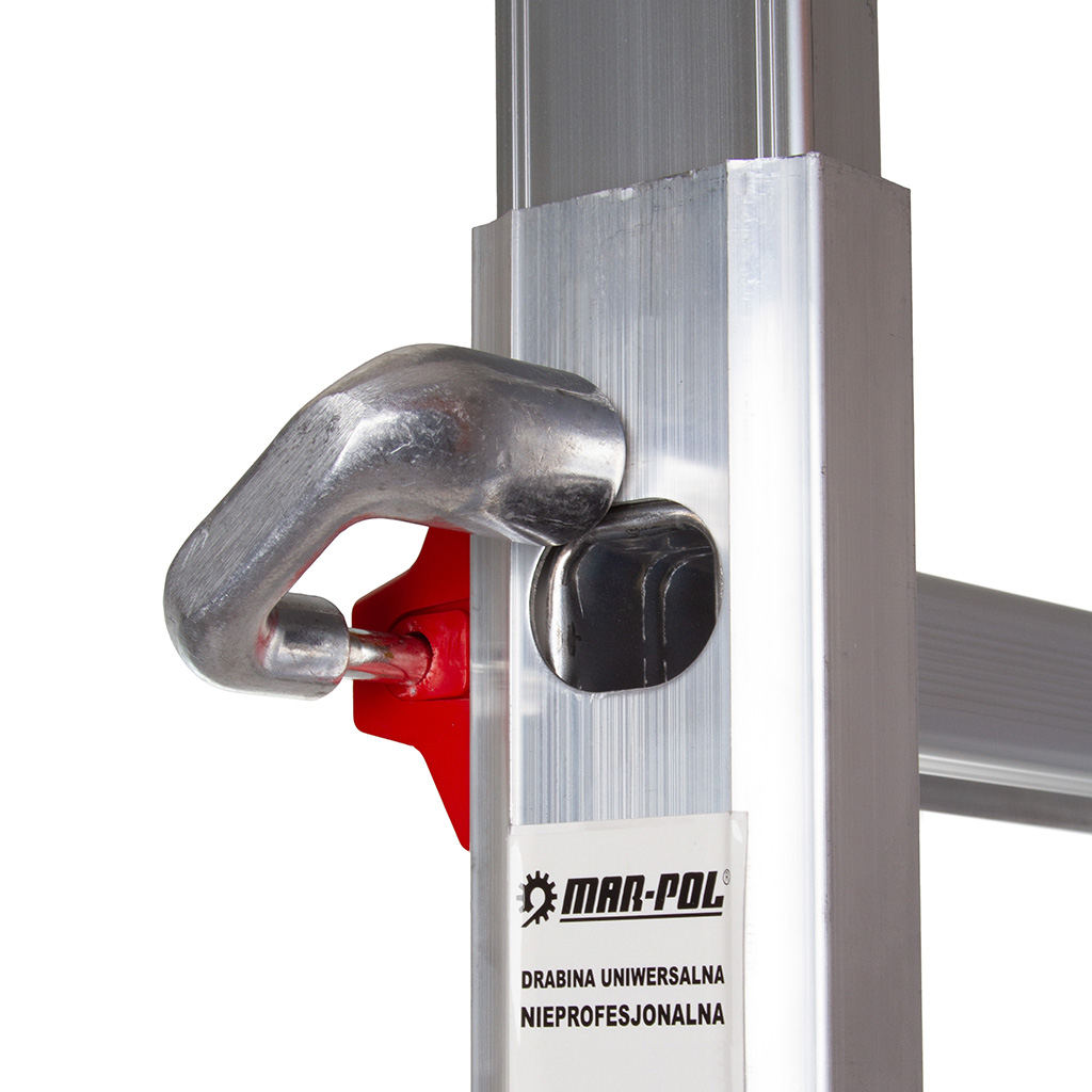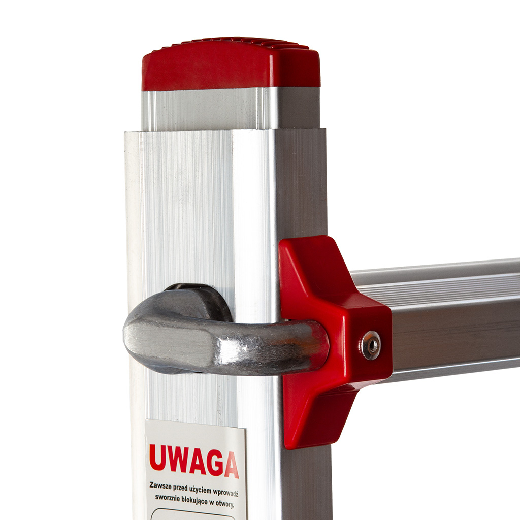 Scara are o înălțime de lucru de 305 cm. Sistemul inovator de blocare a înălțimii scării este conceput pentru a pentru a face lucrul cu scara cât mai ușoară și rapidă posibil. În plus, elementele de blocare se bazează pe un sistem cu arc. Acestea sunt instalate astfel încât funcționarea lor să fie sigură pentru utilizator. Reglarea înălțimii se efectuează treptat, iar saltul este exact de 25 cm. Datorită dimensiunilor sale mici, scara este ușor de pliat la depozitare și transport. Înălțimea sa pliată este de numai 164 cm. Greutatea totală a scării este de 5,8 kg, Oricine o poate muta cu ușurință și o poate seta în poziția dorită. Scara este echipată cu trepte canelate, ceea ce crește semnificativ siguranța la utilizarea scării.