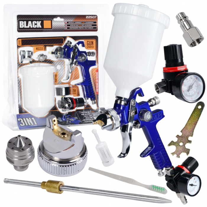 Pistol vopsit pneumatic 1.4mm 1.7mm HVLP pahar vas 600ml regulator (22507)