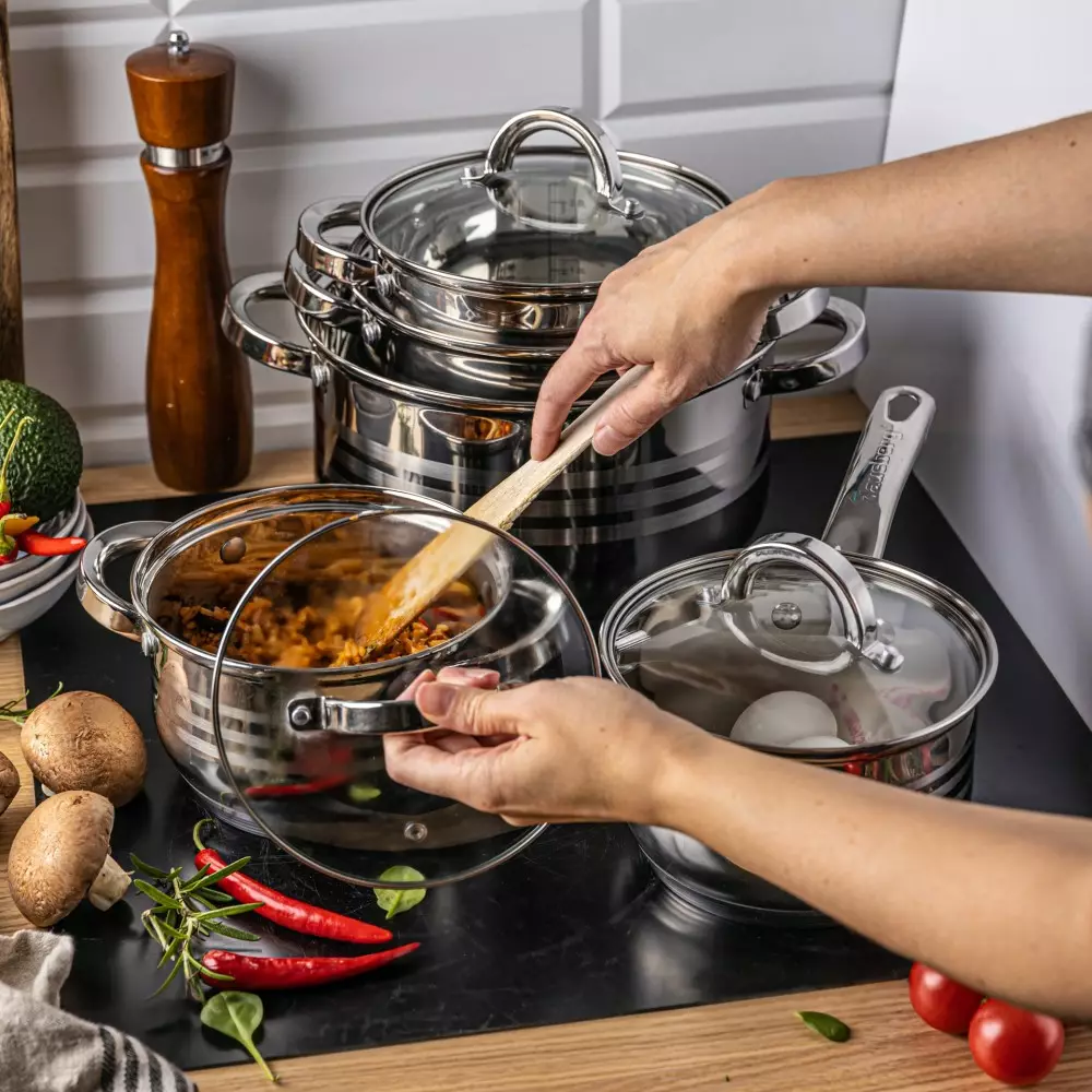 - Potrivit pentru toate tipurile de surse de încălzire: gaz, electric, ceramică, sticlă, halogen și inducție