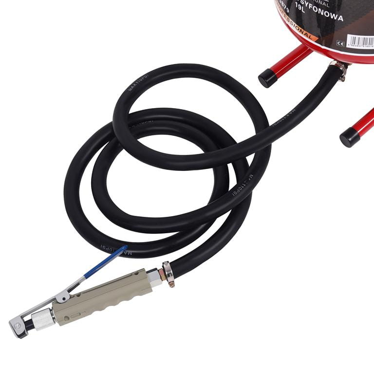 Compoziția setului: ✅ Sablator cu sifon de 19L ✅ Sifon ✅ Suport cu roți ✅ Furtun pneumatic Garanție
