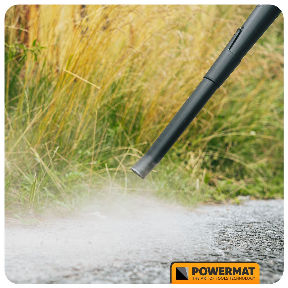 Suflanta Powermat atinge o viteză impresionantă de suflare a aerului de până la 250 km/h, permițând îndepărtarea rapidă a frunzelor, ierbii și murdăriei de pe diverse suprafețe.