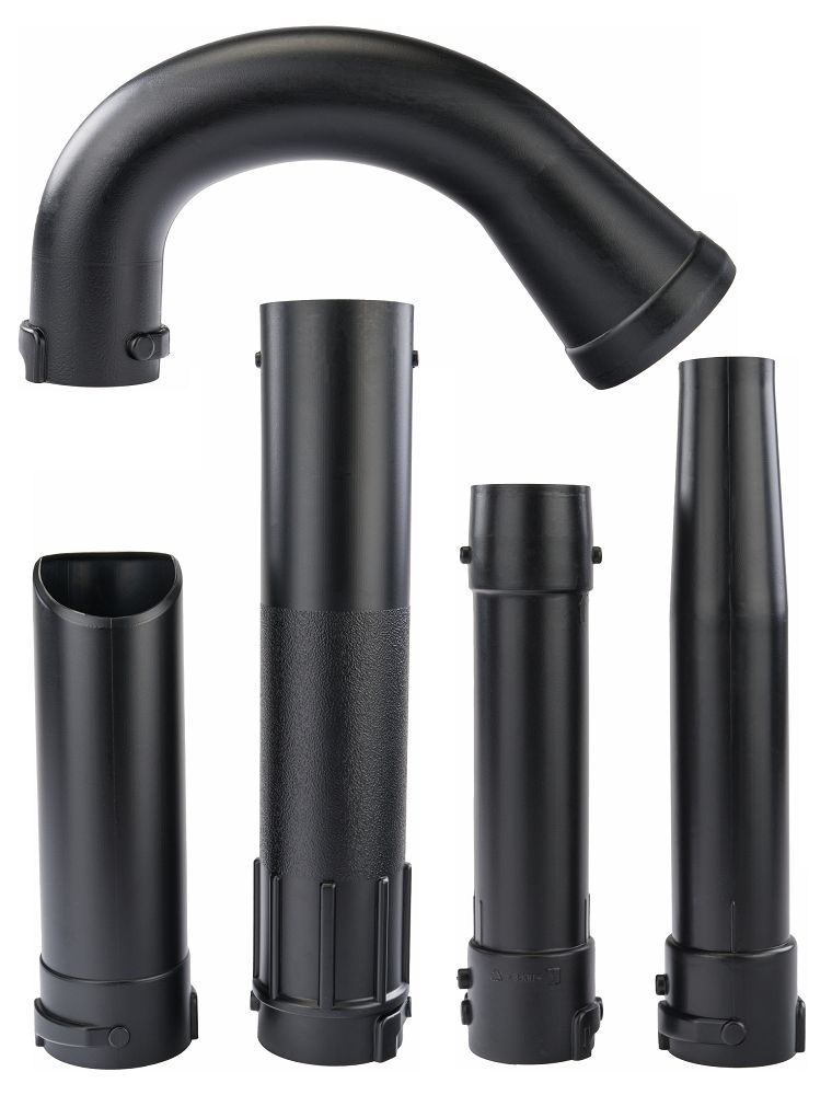 Structura de ieșire a suflantei este alcătuită din două bucăți  de țevi solide fabricate din plastic durabil și ușor.