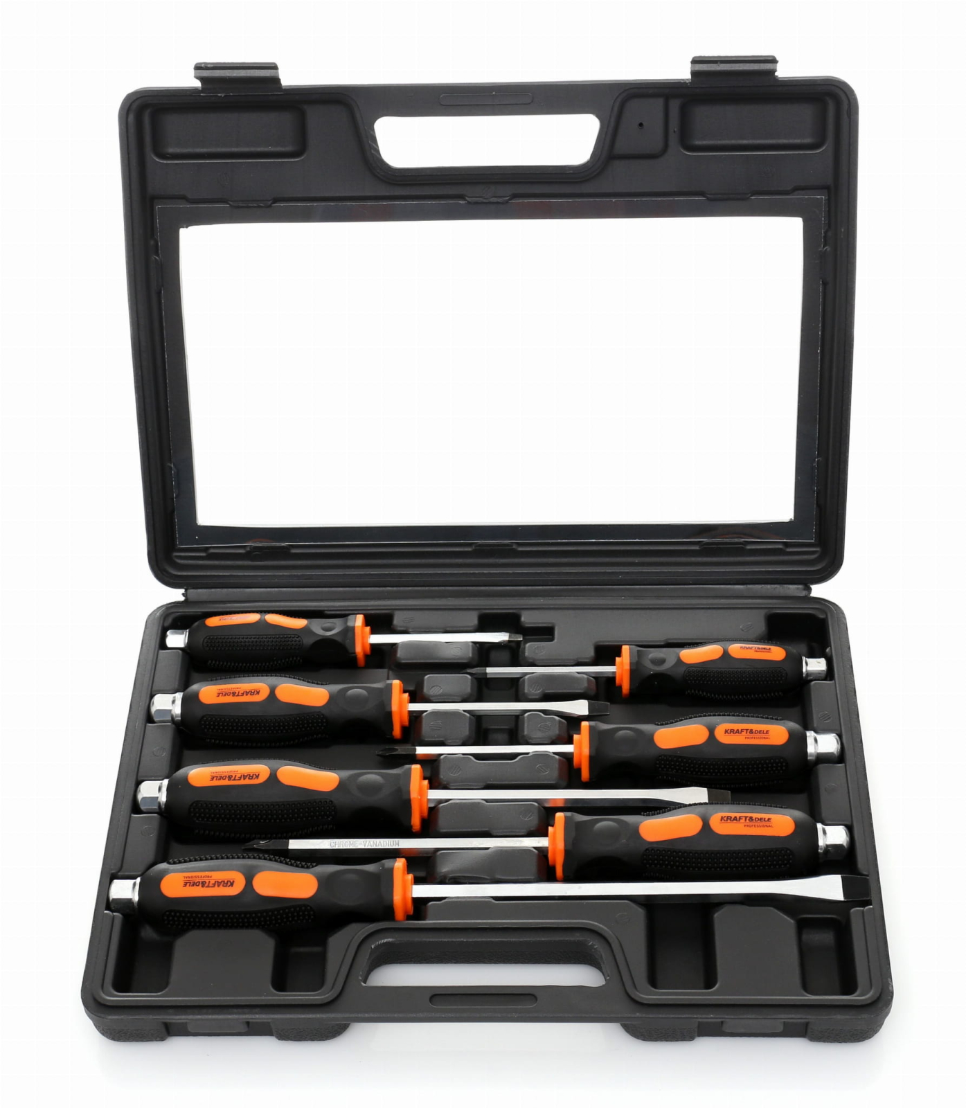 Un set de șurubelnițe cu impact de lăcătușerie, format din 7 piese.
