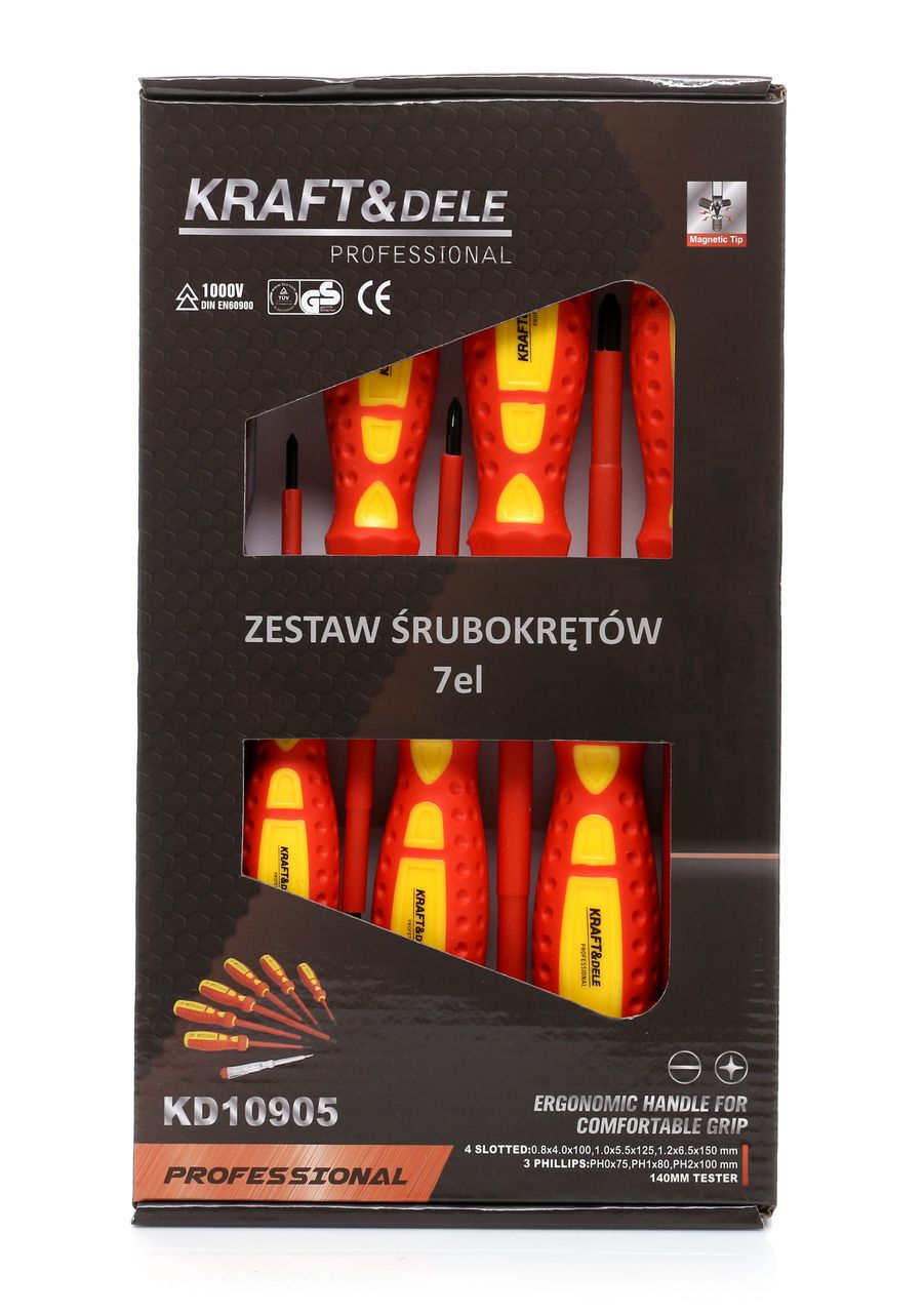 Setul de șurubelnițe KD10905 de la Kraft & Dele este un accesoriu util pentru orice garaj sau atelier. Setul include o sondă de 140 mm.