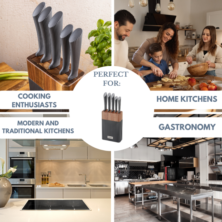 Set 6 în 1 – 5 cuțite și un compartiment elegant pentru depozitare.