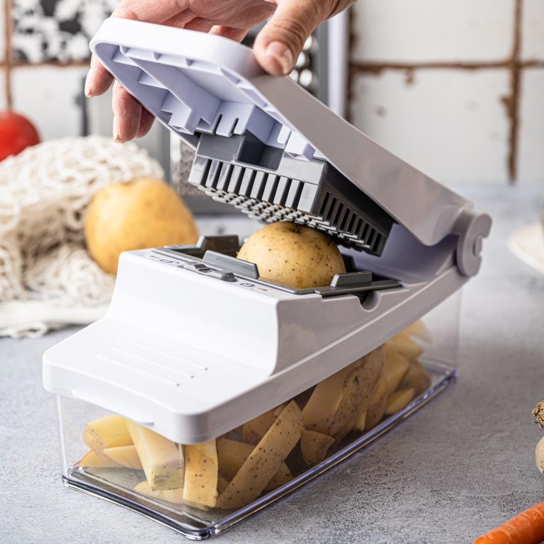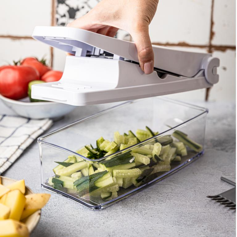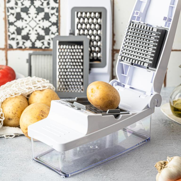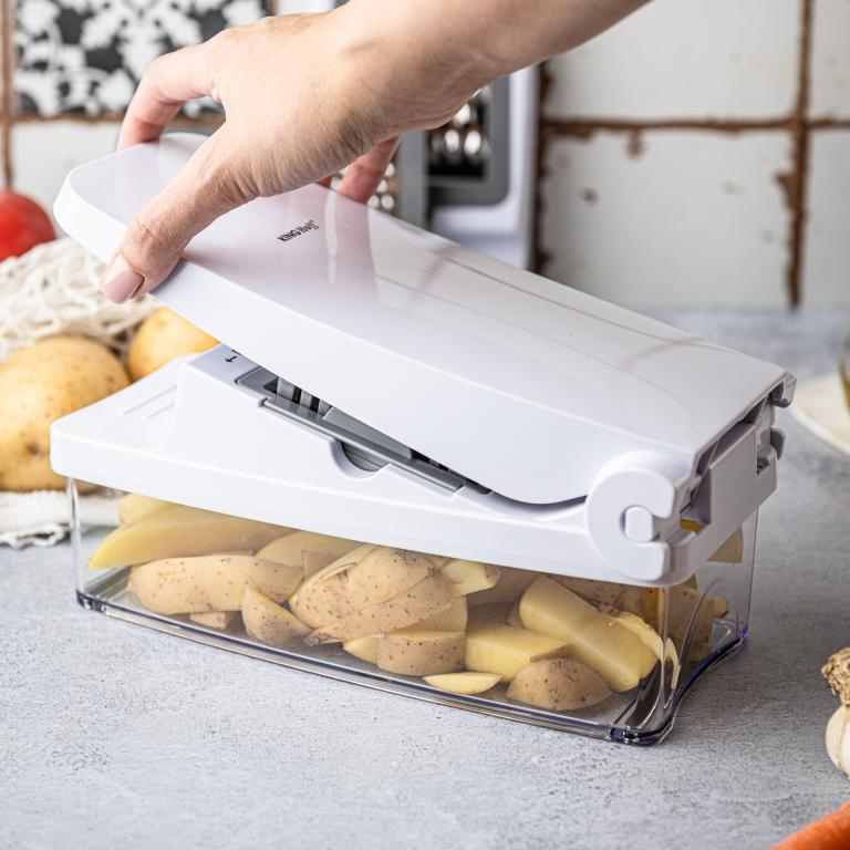 • Practicitate și funcționalitate – acest feliator este un instrument indispensabil pentru prepararea salatelor, a cartofilor de varză, a caserolelor și a multor alte preparate. Eficient și ușor de utilizat, va eficientiza fiecare sarcină din bucătărie.