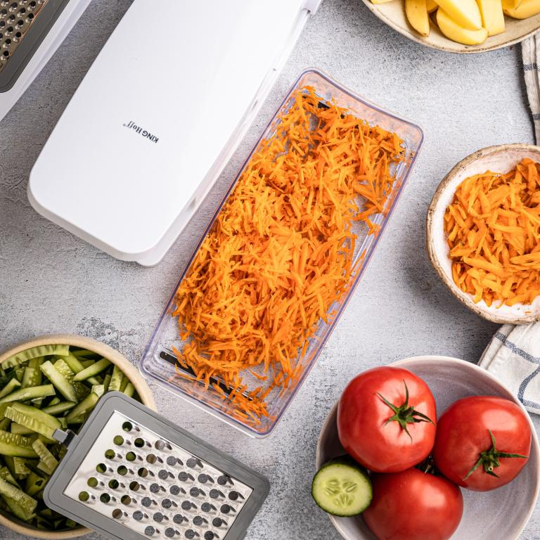 Îmbunătățiți-vă pregătirea zilnică a meselor și investiți într-un feliator de alimente KINGHOFF – un instrument de bucătărie fiabil care va face gătitul mai rapid, mai ușor și mai plăcut!