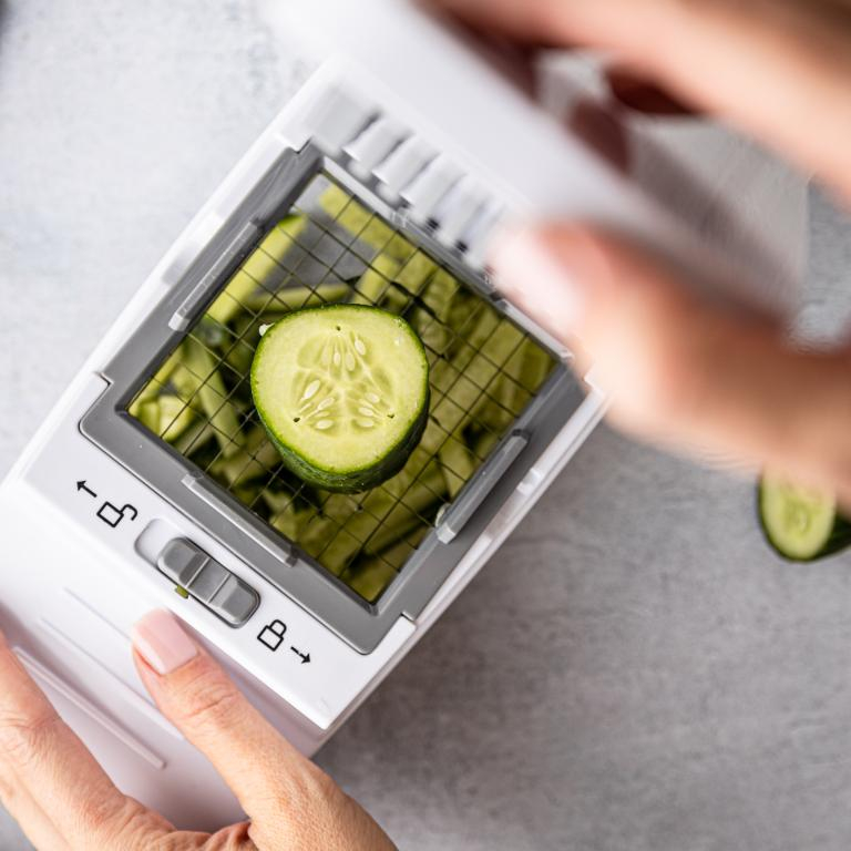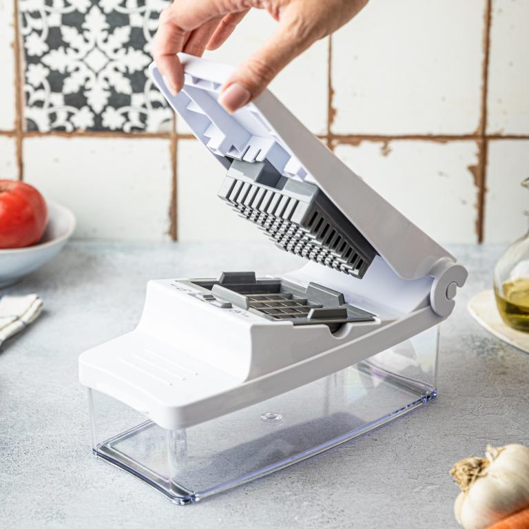 • Durabilitate și calitate superioară a manoperei – feliatorul este fabricat din materiale solide, rezistente la deteriorări, cu un corp din plastic durabil și lame din oțel inoxidabil, ceea ce îi asigură longevitatea.
