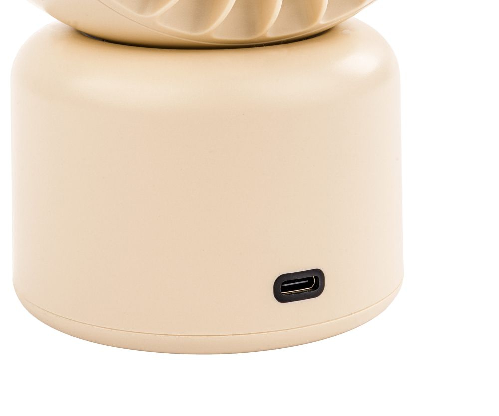 Ventilatorul este echipat cu o baterie puternică litiu-ion de 3600 mAh, permițând o funcționare de lungă durată fără a fi nevoie de o conexiune la alimentare. Alimentarea este furnizată printr-un port USB universal de tip C.