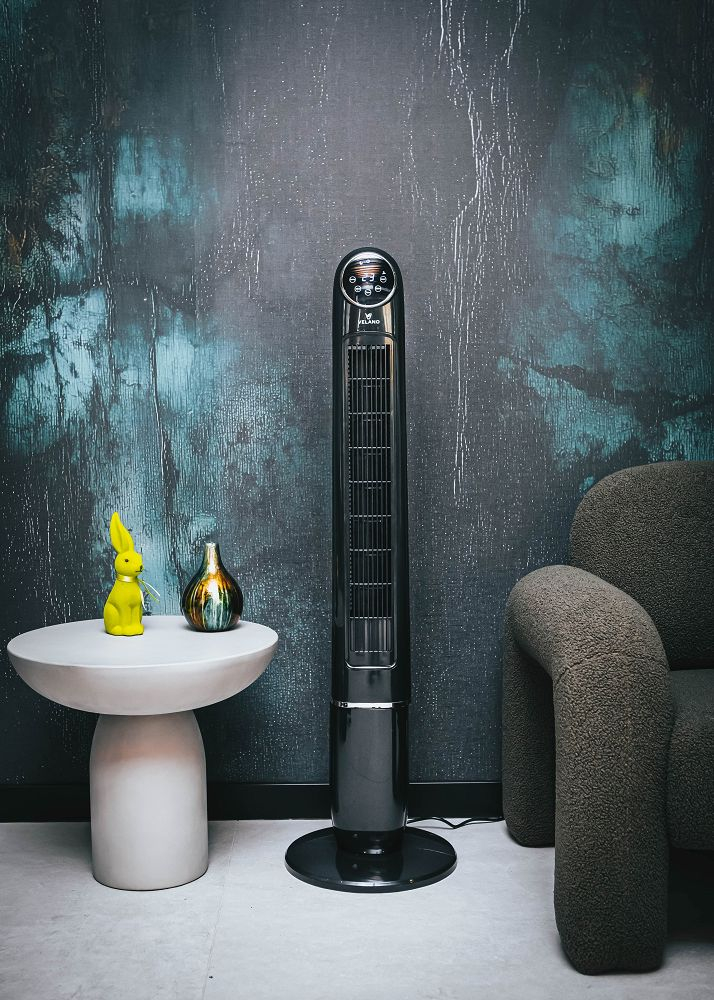 Designul subțire și elegant, cu o înălțime de 120 cm, face ca ventilatorul să se integreze perfect în orice interior, combinând funcționalitatea cu un aspect modern.