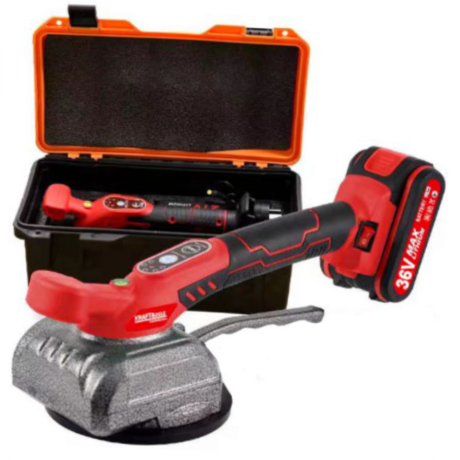 Ventuza vibranta fara fir pentru pozarea faianta de la marca poloneza Kraft&Dele, model KD10768. Permite pozitionarea usoara a placilor cu ajutorul ventuzei, avand capacitatea de a ridica obiecte cu greutatea de pana la 80 kg. În plus, datorită funcției de vibrație, îndepărtează bulele de aer reziduale care pot duce la potențiale fisuri, asigurând astfel o legătură solidă și durabilă a plăcii cu suportul.